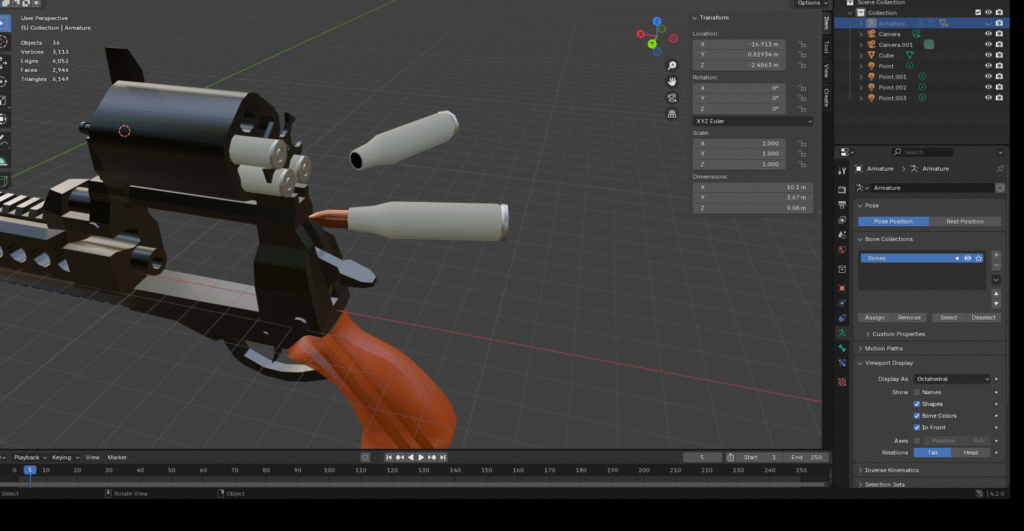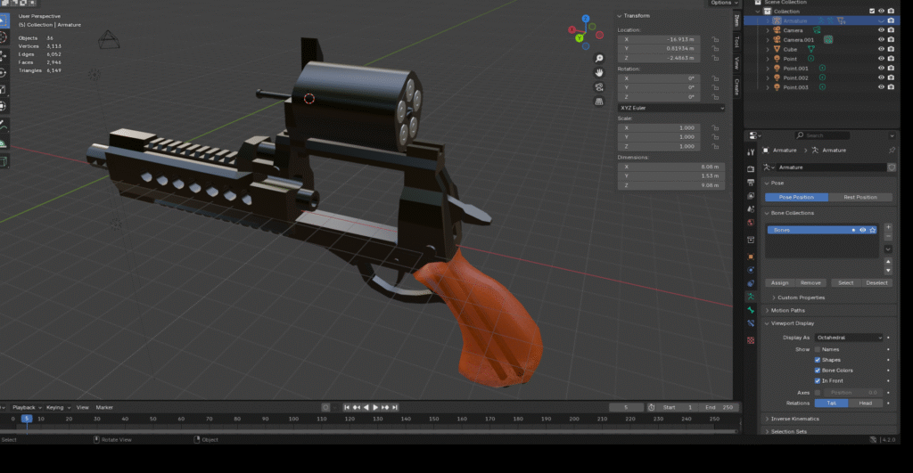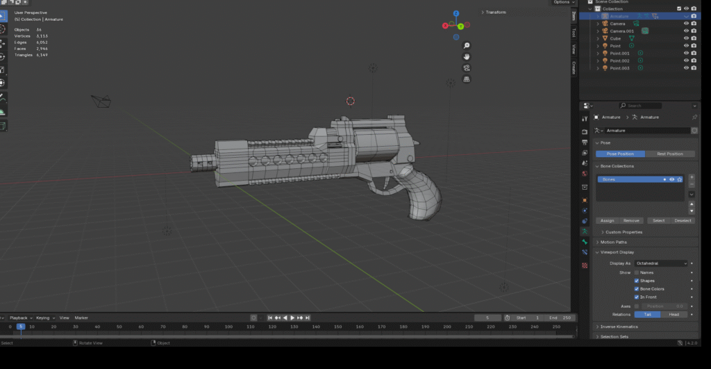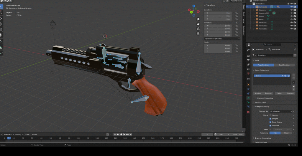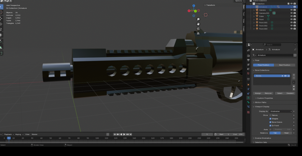 This model has bones and can be posed. It needed a lot of them because I like adding lots of detail to gun models.